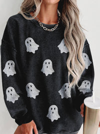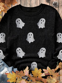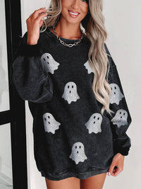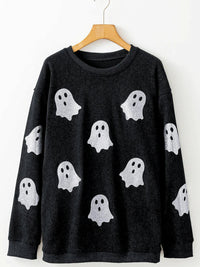 Black Ghost Corded Crew Sweatshirt – Cute Halloween Pullover for Women
