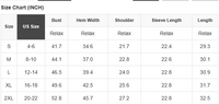 Order your usual size for a slightly relaxed fit. Size up one for a looser fit. Size up 2-3 from your usual size for an oversized look.