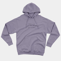 Available in five versatile colors (bone, plum, cement, storm blue, and sandstone), each hoodie is printed by hand in small batches—because mass-produced sarcasm just isn’t the same.